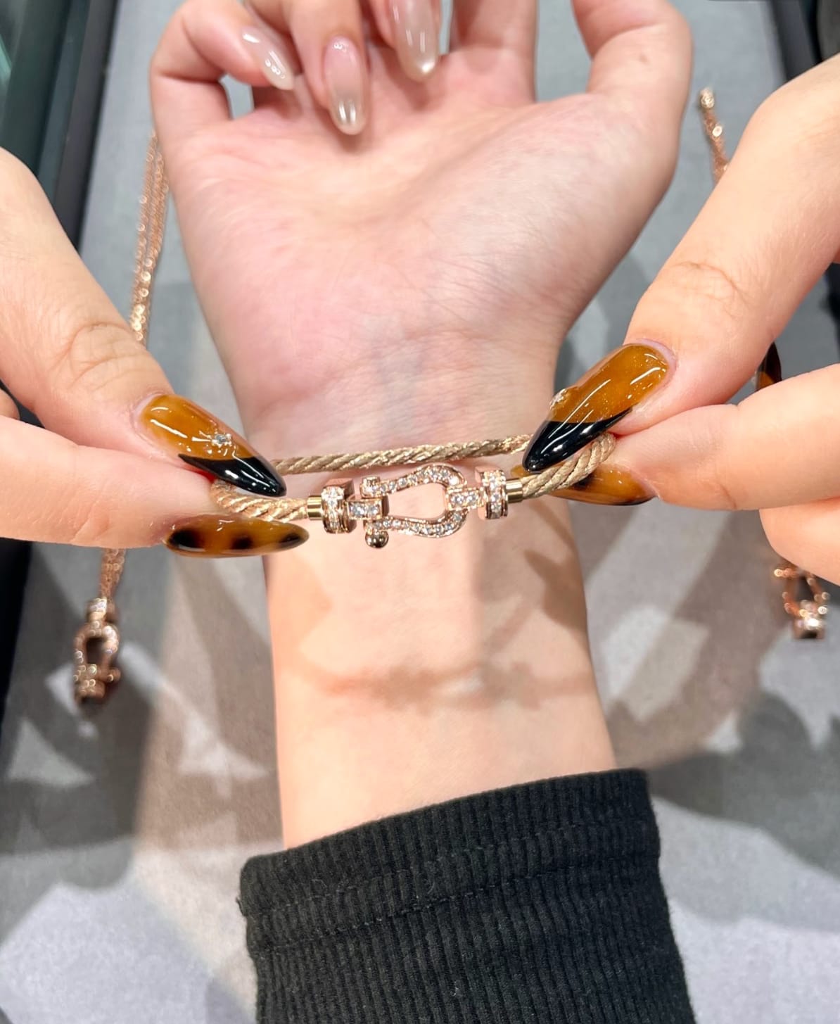 This elegant medium‑model cable bracelet is crafted in 18k pink gold and features a diamond‑paved buckle that adds refined sparkle without overwhelming the design. Inspired by contemporary luxury jewelry, the bracelet blends the strength of a cable motif with the sophistication of brilliant‑cut diamonds, creating a piece that feels both modern and timeless.