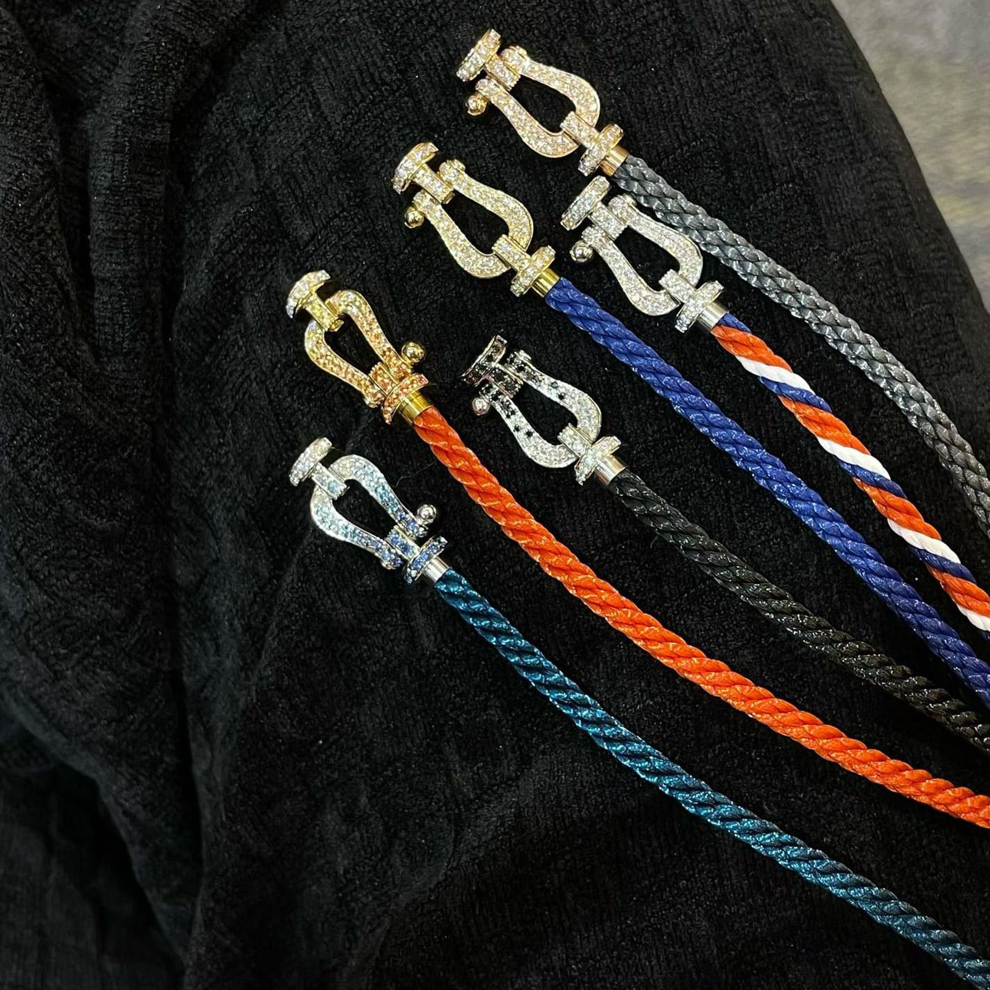 These elegant bracelets combine woven cable bands with diamond‑pavé gold buckles, creating a striking balance of texture, brilliance, and modern luxury. The flexible cable design offers a sleek, contemporary look, while the pavé‑set diamonds on the gold buckle add refined sparkle and sophistication.