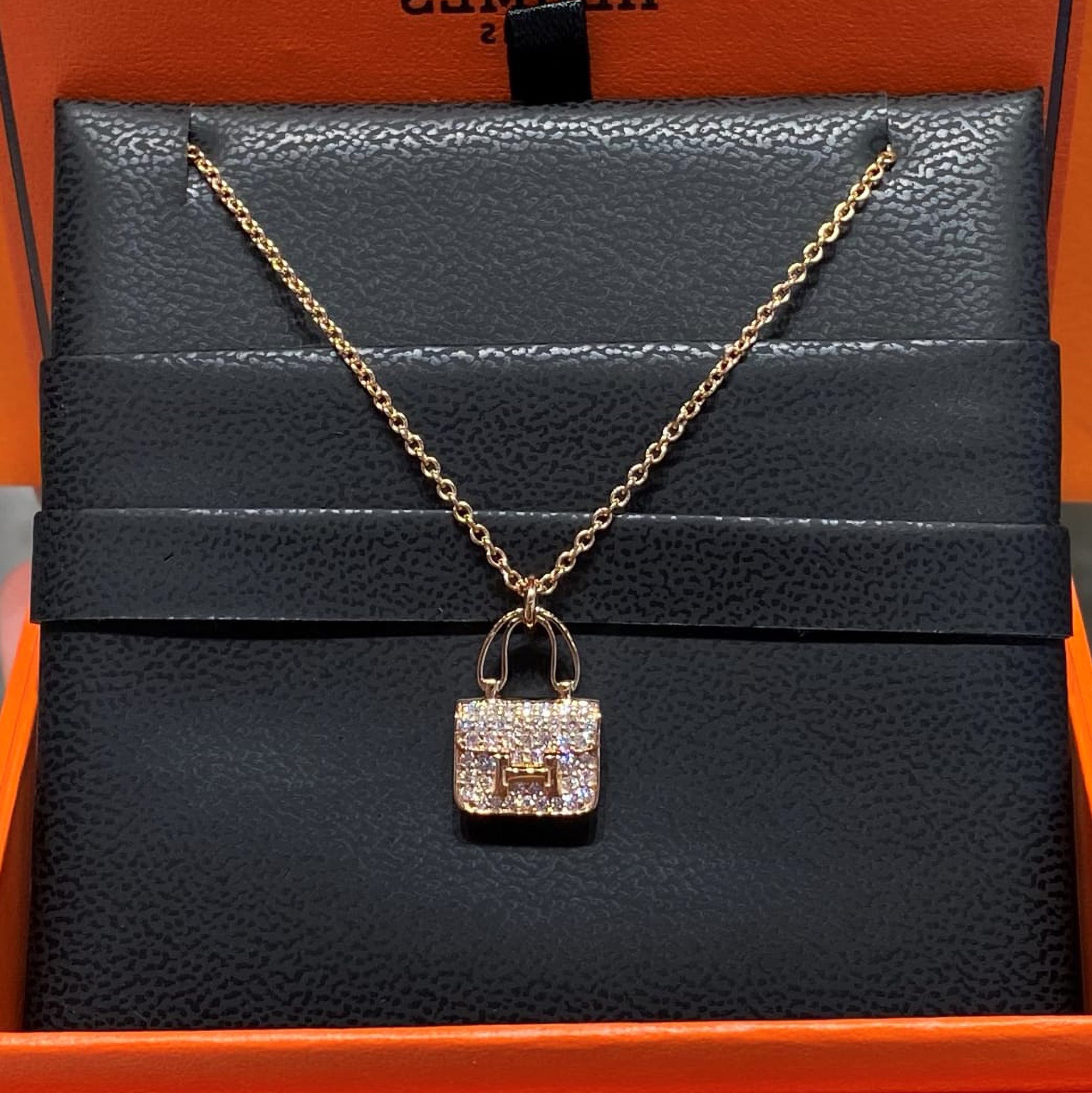 This elegant pendant necklace is crafted in 18K rose gold and illuminated with pavé‑set diamonds, creating a refined sparkle that feels both modern and timeless. The warm blush tone of rose gold enhances the brilliance of the diamonds, giving the pendant a soft, luxurious glow.
