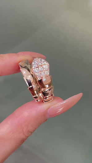 Serpenti Viper Two‑Coil Ring in 18K Rose Gold with Pavé Diamonds, Luxury Snake Ring, Fine Jewelry Gift for Her