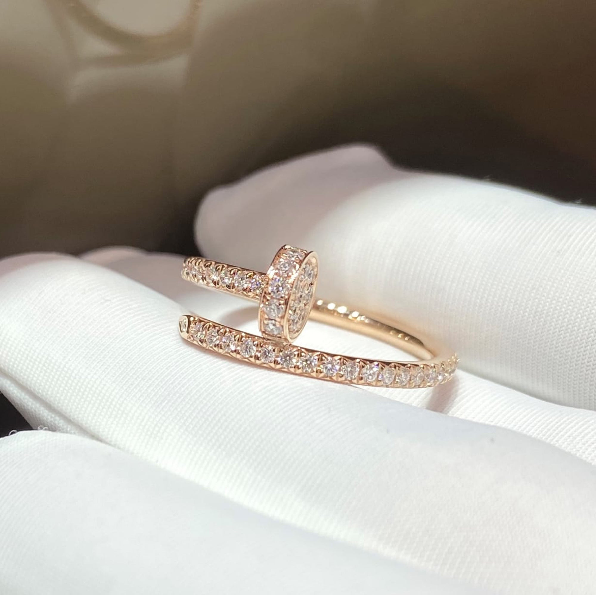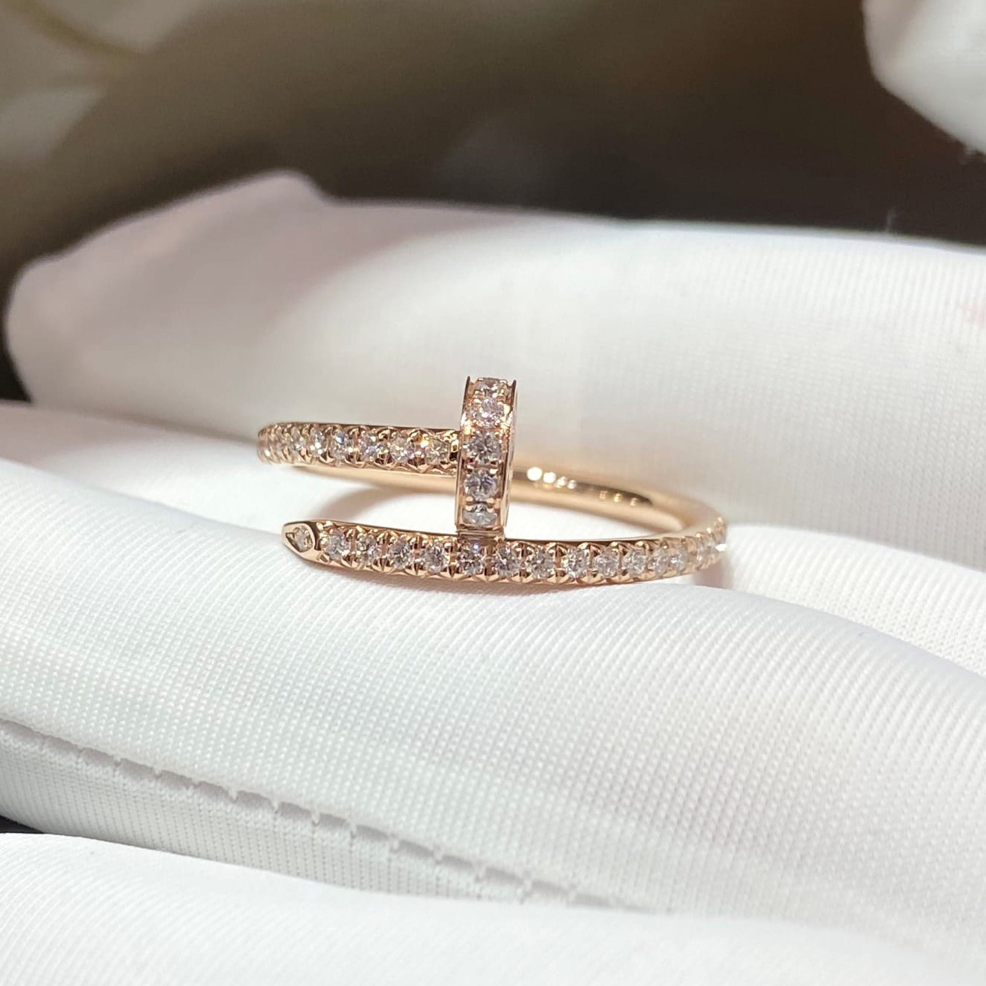 This elegant pavé ring is crafted in 18K rose gold and set with sparkling round diamonds, creating a refined band that catches the light from every angle. The warm blush tone of rose gold pairs beautifully with the brilliance of pavé‑set stones, offering a timeless look inspired by fine‑jewelry designs found in luxury collections.